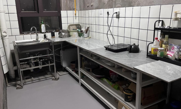 2)厨房:如果做饭的话,可以给灶台墙面贴上瓷砖,地面不需要铺,水管改造同样走明管,然后装一台燃气热水器就行了。