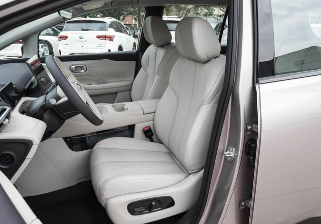 内饰部分同样是简约风,悬浮式造型液晶屏配仪表盘组成双屏系统,没有过多花哨的元素,平直的中控台面,怀挡机构,两幅方向盘,双杯架,手机充电面板都是标配,门板装饰也尽量简洁,有助于节约成本,电冰箱不会缺席,就没有吸引娱乐屏。副驾驶0重力模式,座椅通风加热,电动记忆,甚至按摩,在这个级别还算是相当的周全,后排座椅也具备137度角度调节。